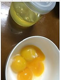 蛋清和蛋液分离,把鸡蛋黄打散,加入到混合溶液中
