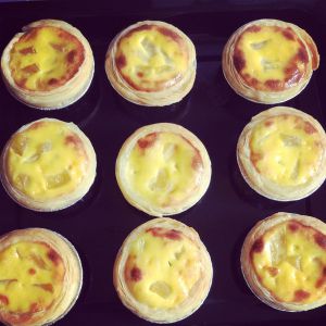 出锅的时候一定要注意颜色,蛋挞皮看上去分层了,有焦糊色就可以了