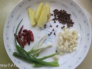 姜切片,蒜头切碎,葱白切下,其余切葱花。