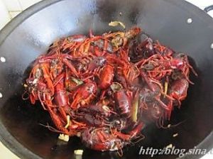 炒至龙虾变色加料酒、生抽、老抽,煮开后,加水