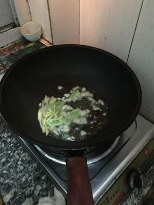 随后加入蒜末炒香