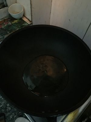 冷锅放油烧热至5成热,凭感觉,手放在油上有烤热的感觉