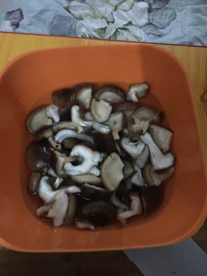 香菇撕开放水浸泡5分钟