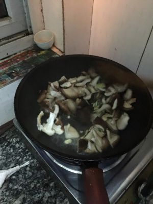 先倒入香菇炒香,撒入少许盐就可以了,不需要太多的调味品。