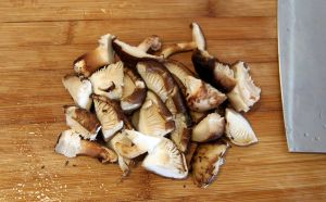 2.将香菇焯水,一分半钟捞出,浸冷水沥干。