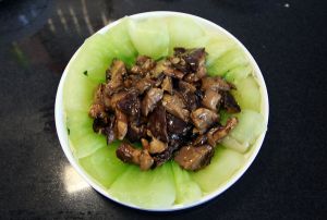 6.香菇码在油菜上,浓油赤酱十分可口,大功告成。