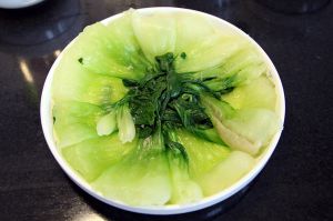 水开下过锅焯油菜,加少许盐,看油菜变翠绿色捞出备用。