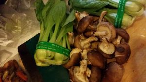 先炝锅,葱姜炝锅,先煸炒香菇,如果火小,香菇爱出水,火可以酌情大一些,炒软香菇后放入油菜,炒到断生,开始调味,我从来不放酱油,炒菜一般不放酱油。就是不爱吃酱油。出国前调个芡,这样菜会亮一些。