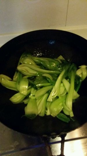 起锅热油,下入油菜,注意火候,油菜炒塌即可。(炒油菜是可点入少量盐和鸡粉)