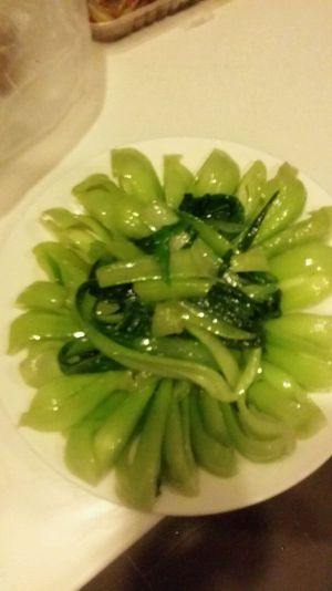 盖在码好的油菜上,一道美味的香菇油菜就简单的完成了。