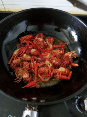 用大火把油烧热,让龙虾在锅里爆一遍,把龙虾放入碗中。