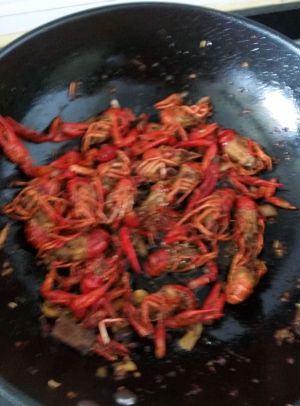 本来炒会要放刚才腌虾的料酒的,结果我妈以为我不要就给倒掉了,所以后来只好加了点酱油继续炒,但是虾壳里的肉不是太入味。这个过程也就炒个四五分钟就行了