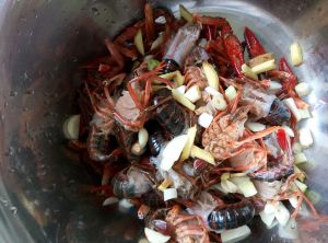 因为我买的是本地小龙虾壳有点硬,为了安全起见我把它的夹子全用剪刀剪了然后用牙刷一个个刷干净,因为是自己吃所以做的仔细点,刷了两三次