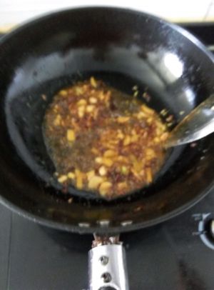 热锅下油爆炒姜蒜辣椒蒜蓉