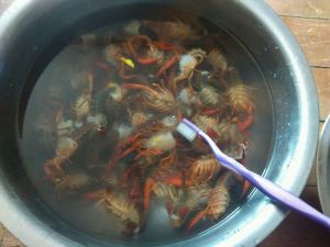 买回小龙虾,可以让老板替你处理一下,去头去虾线,接下来就是使用牙刷努力清洗。
