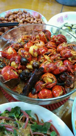 龙虾变色后放泡椒、豆瓣、干辣椒