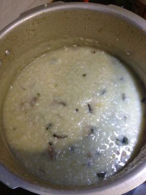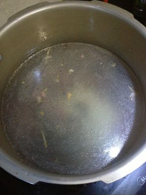 待高压锅放完气后掀开锅盖,把剩余皮蛋倒入,加适量鸡精和盐调味,开小火三到五分钟即可。