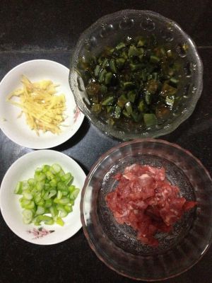 瘦肉切丝,皮蛋切丁,姜切丝,切葱花备用