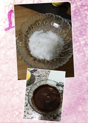 巧克力分成两份,留出20g切块。剩下的切块和黄油一起隔水融化