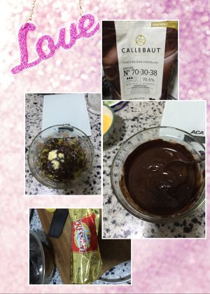 黑巧取100g加入黄油,微波加热至融化,或者隔热水加热。我用的这种巧克力是豆状的所以不用切了,如果是块状的切成小块即可。
