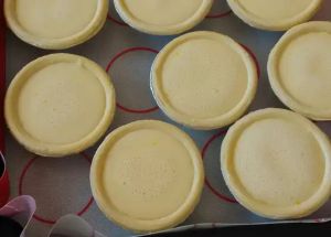 送入预热好的烤箱,180度20-25分钟,至蛋挞液凝固,挞皮接近焦黄就可以啦!