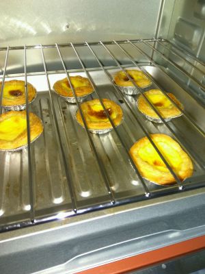 入烤箱中下层,上下火,180度烤20-25分钟,看烤箱脾气和蛋挞颜色自行调整。