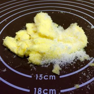 做挞皮:软化后的黄油+糖,拌匀;