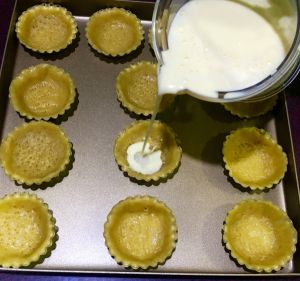逐一倒入挞皮中,以九分满为好;