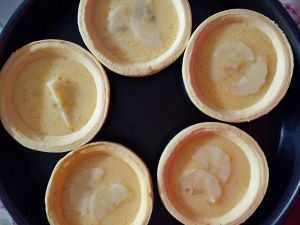 做好的蛋挞水倒入蛋挞壳。