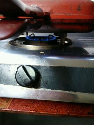 把火调这样往上调到中火,向上调你就得到一圈均匀的火候,要是往下调的话,是中间猛两边小,这样对受火均匀不好,加上盖焖制,如果你做的量大的话要左右前后四五分钟移动一下
