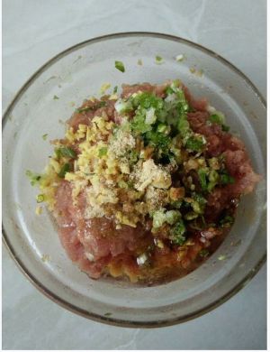 猪肉剁馅 玉米剥粒 加入鸡蛋 少许酱油 胡椒粉 盐 一点料酒 搅拌均匀肉馅 静置一两分钟入味。