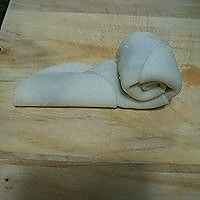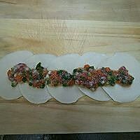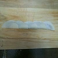 把四张饺子皮平铺 每张饺子皮交接处抹少许水 增加粘性 把肉馅平铺在饺子皮上 先对折 然后从右到左依次卷起来 即可。