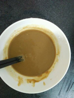 60g清水分三次加入90g麻酱,逐次调匀。(根据麻酱不同适当调整水量,但不要太稀了)