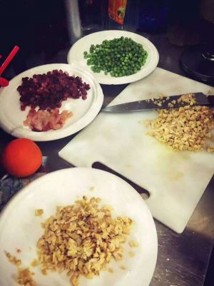 首先把所有食材切粒备用,香菇也是提前泡好了。