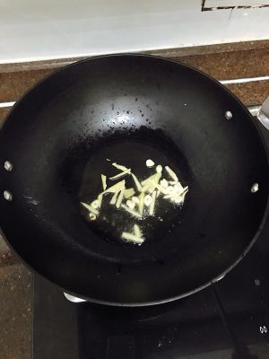 热锅倒入适量油,下入蒜瓣和辣椒段爆香