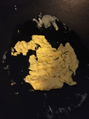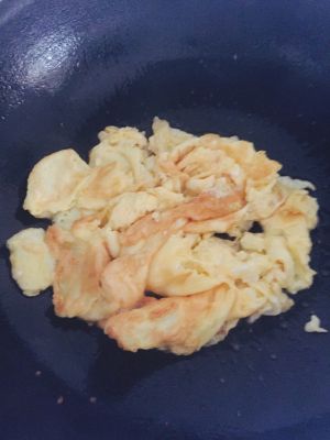 鸡蛋打散,锅里油热后把鸡蛋炒成型,盛出。