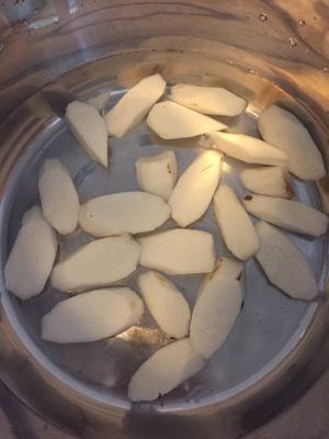 切好后装盘,把鸡蛋打散,打鸡蛋的时候可以加点醋和白糖。