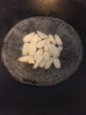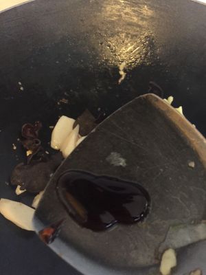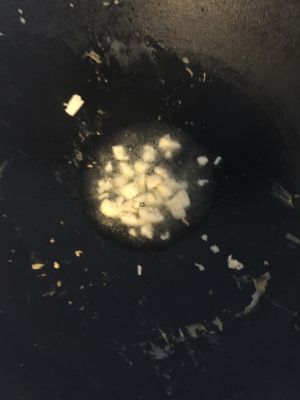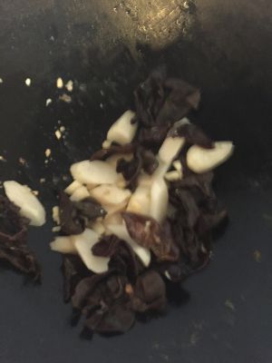 放入油,放入葱蒜沫,出香味后放入木耳,多翻炒几下