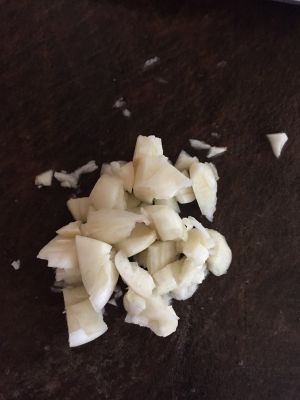 三个鸡蛋打入碗中,加入少量的盐一起打散成蛋液。胡萝卜洗干净后切成薄片。大蒜也去皮切一切。