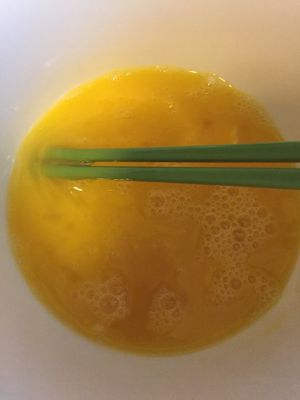 热锅凉油,油热后,倒入蛋液,迅速划散,炒略凝固就可以先盛出装碗备用。