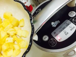 把菠萝肉挖出切一部分菠萝粒,剩余部分放入豆浆机➕冰糖➕一点水按果汁键榨汁。也可以用榨汁机哈,我是因为榨汁机洗太麻烦所以没有