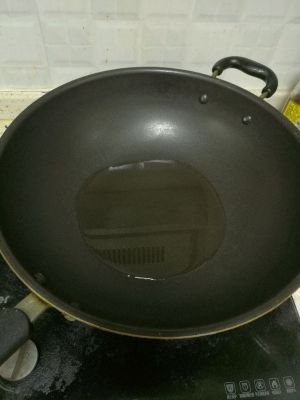 锅内在倒入油,放入韭菜的头部先进行炒制