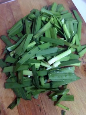 韭菜摘洗干净,这里说点题外话,韭菜作为绿叶菜,储存是个问题,我有个小妙招,在这一起分享下