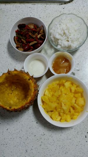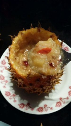 备注:1.白糖和蜂蜜的量根据自己的喜好添加,因为菠萝加热后口味偏酸,所以要适当多放一些。 2.糯米和配料的比例是2:1,这样口感不会甜腻。