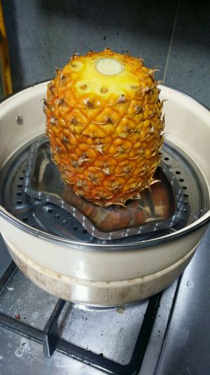 3.该上菠萝盖,大火蒸制25-30分钟。