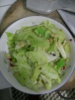 最后放入撕好的圆白菜急火快炒,烹入白醋,加入生抽炒匀,待菜叶变得软一些,加入盐调味,头出锅前加入鸡精即可。