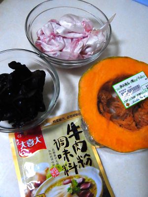 食材:鱼鳔、南瓜、排骨(忘记放在一起拍摄)、木耳和牛肉粉调味料