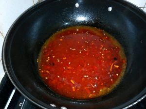 豆瓣酱炒好后加入生抽老抽料酒开水。
