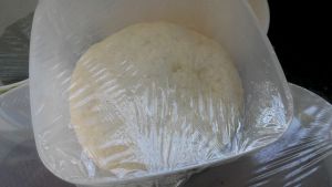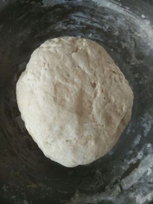 每份粉取等量的酵母水,并加点糖水搅拌和成光滑的面团!盖上保鲜膜等到发酵!