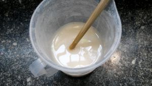 鸡蛋+糖,用打蛋器打匀,不需要打发